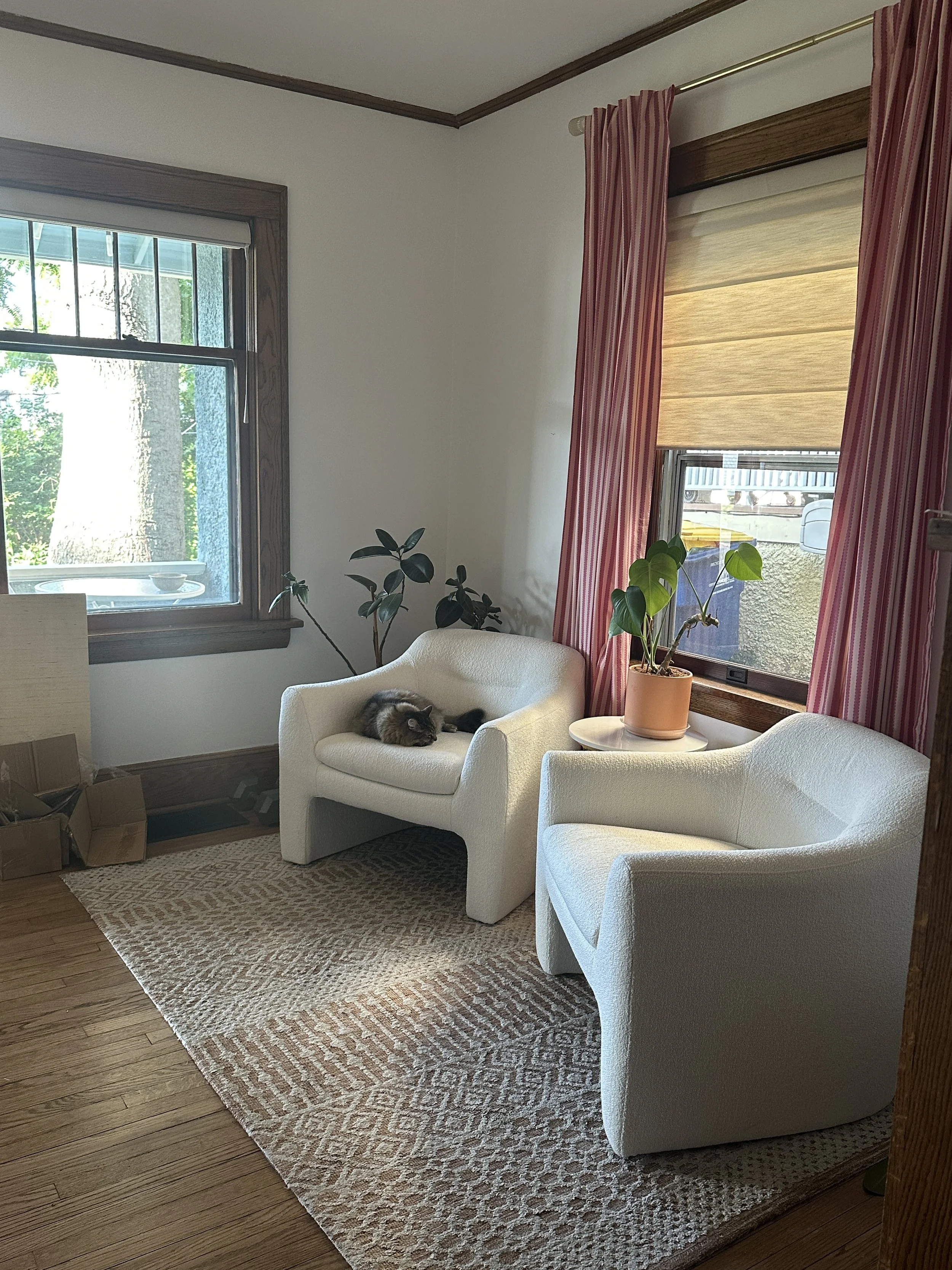 3. I’m obsessed with this little part of my very tiny living room. I’m going to work with Alt Design to complete it but when Article did a holiday sale, I snagged these cute chairs. Brave and idiotic to buy this color with cats and kids, but I stand by my decision. 🤣